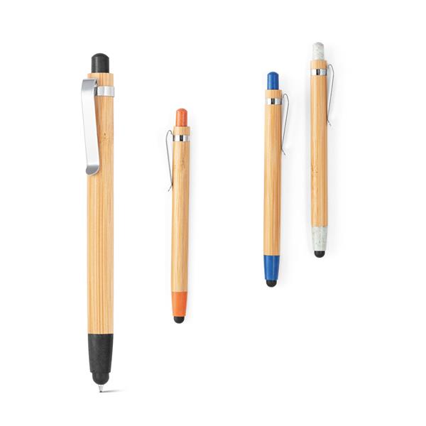 ORSON. Esferográfica em alumínio 94% reciclado com detalhe em bambu no clipe e escrita em azul - 91787